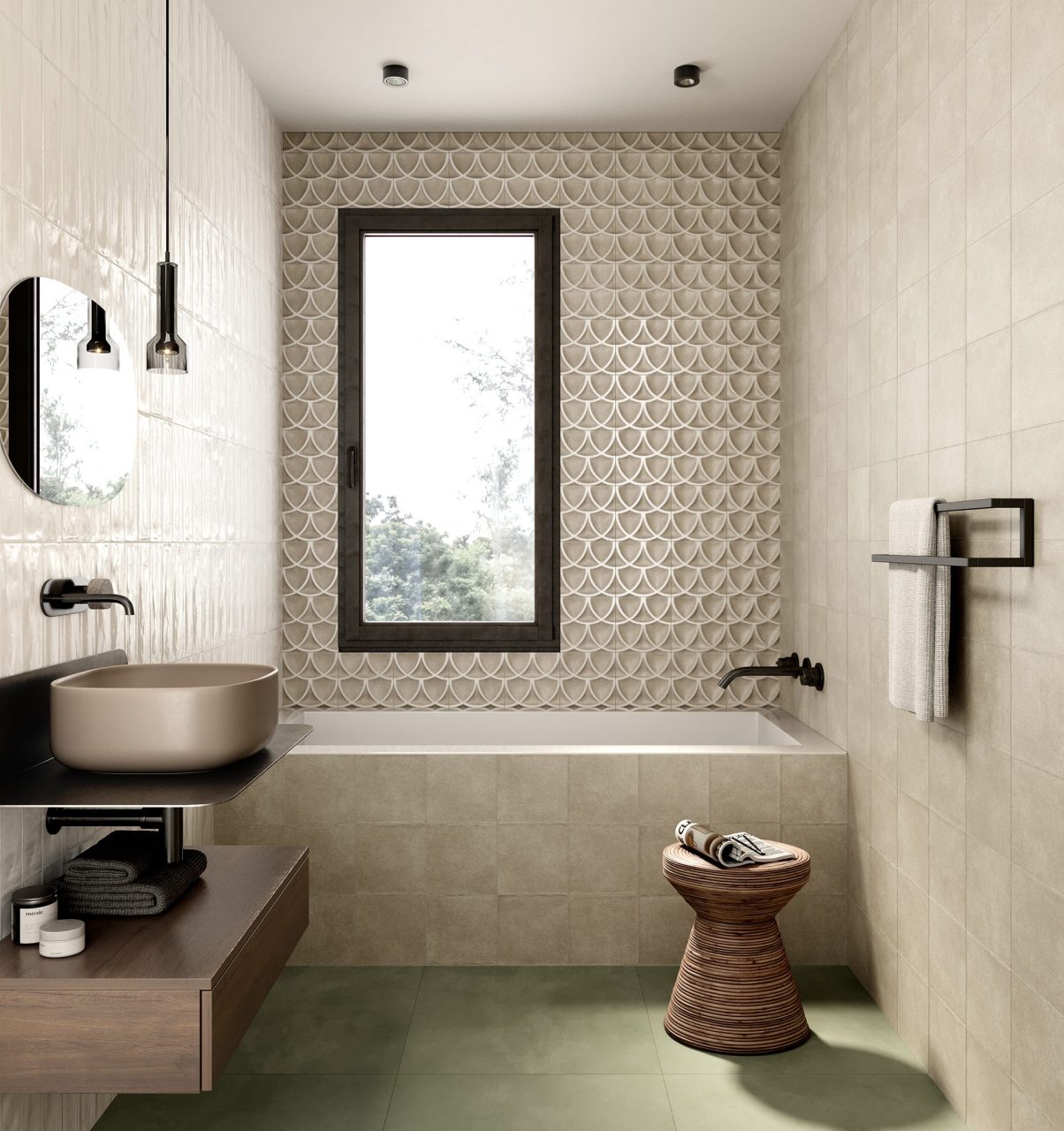 Creta has inspired by real clay. Clay can be moulded, engraved and crafted by hand, and the Creta collection reflects these artisan techniques. Creta has 4 neutral backgrounds, with a natural, powdery look – these are complemented by 3 types of decorative patterns which are shaped and moulded into 3D patterns. Creta is a porcelain tile collection suitable for wall or floor applications