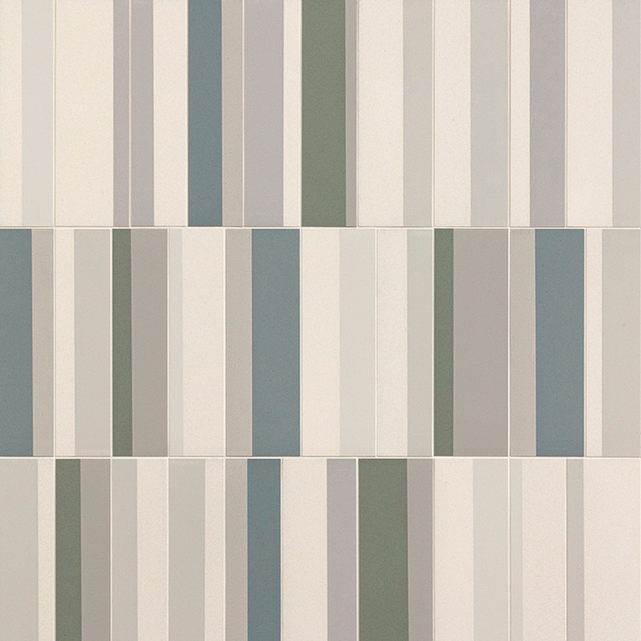 The combinations of this range are endless. Each piece has varying texture and pattern, and each rectangular size is mixed in the box which allows a natural variation with each layout. One box contains 30 pieces, 40% in 100×300 and 60% in 75×300.