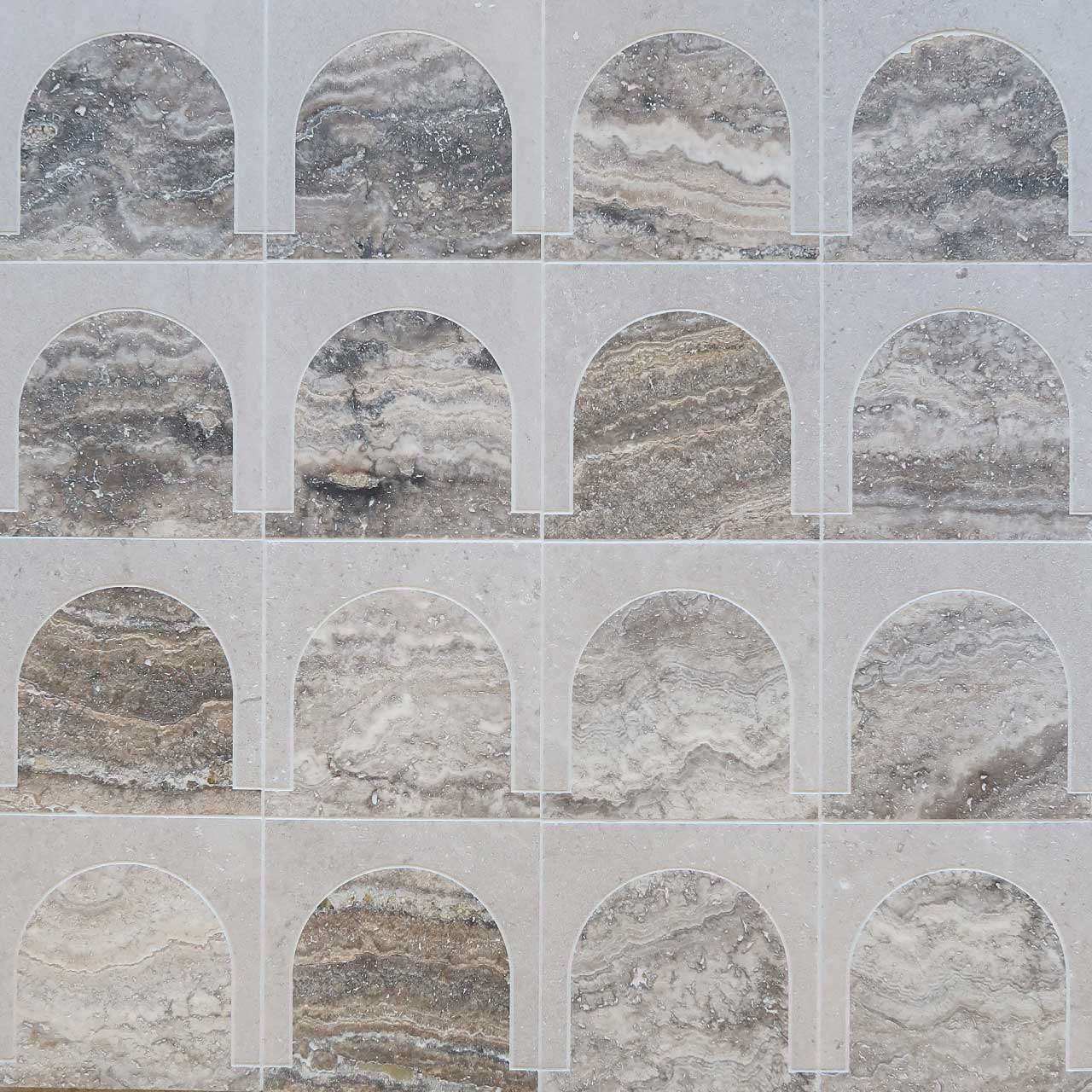 Sorelle Curva Grande Gris Travertine & Silver Trav