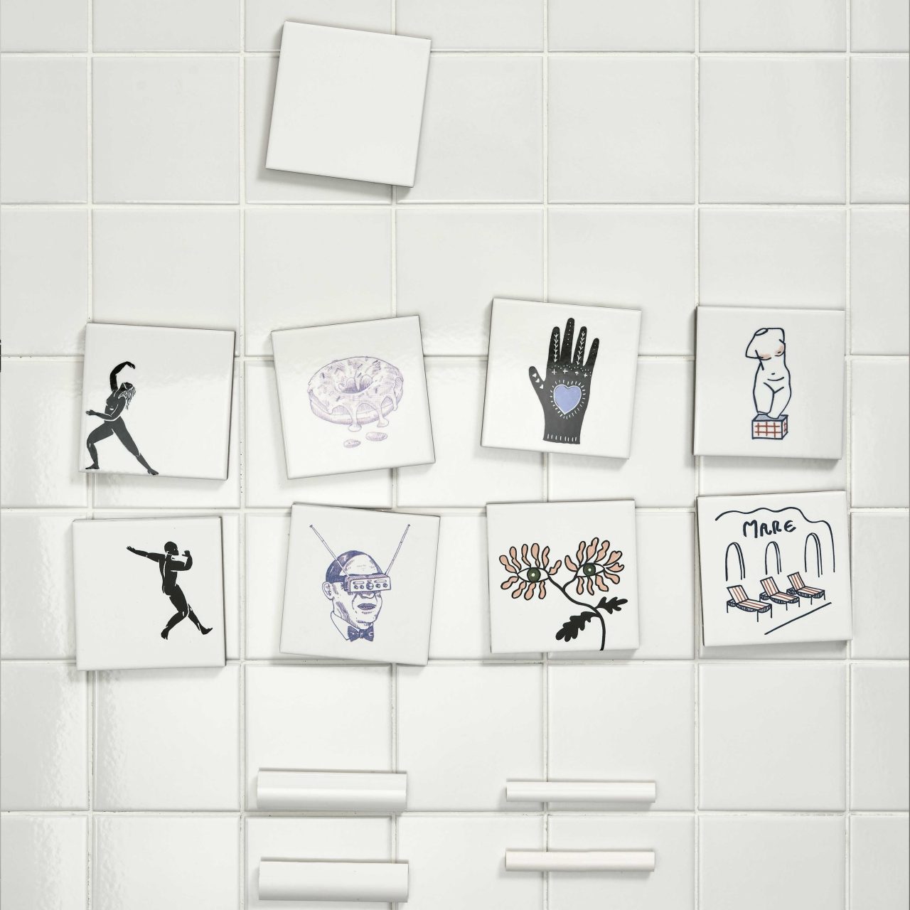 Each story is sold individually – mix it with white in gloss or matt, or use them on their own. Suitable for wall or floor applications, stories is a fun collection, ideal for feature walls, bathrooms, or even table tops