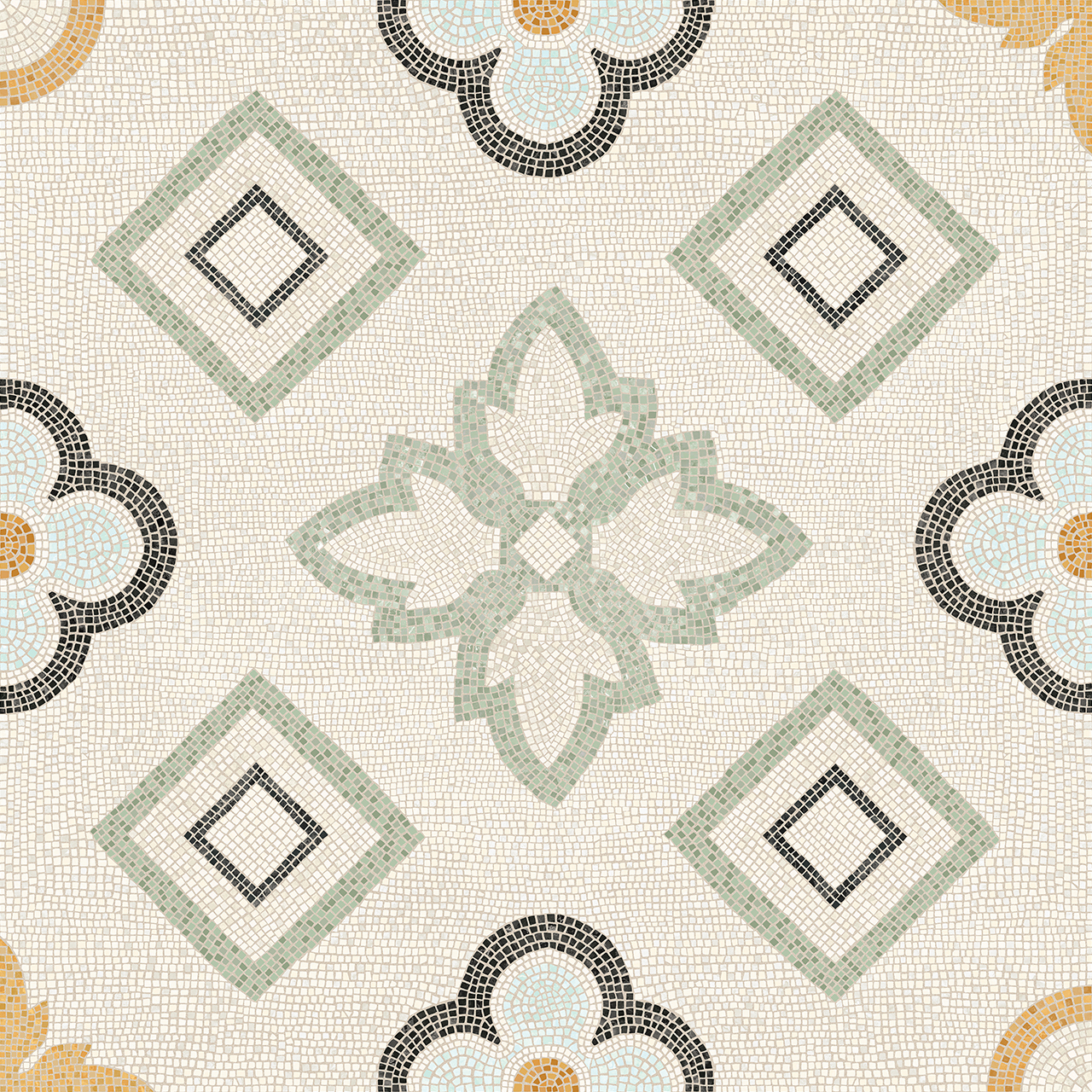 The traditional Roman mosaic has been reinterpreted into a flamboyant tone, and is available in a maxi size 1200×1200. TWO is the latest collection of large format decoration, belonging to the same family as the ONE collection