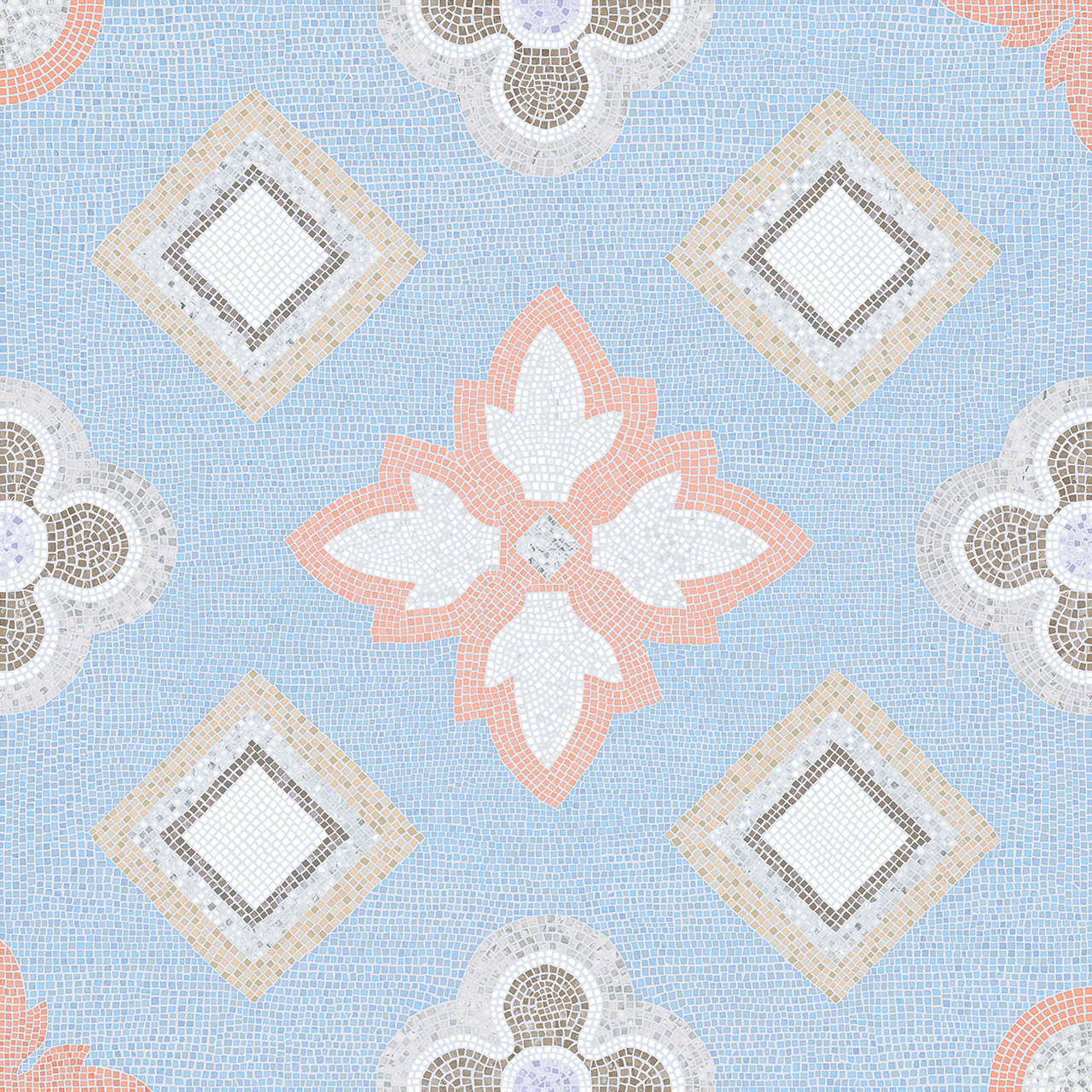 The traditional Roman mosaic has been reinterpreted into a flamboyant tone, and is available in a maxi size 1200×1200. TWO is the latest collection of large format decoration, belonging to the same family as the ONE collection