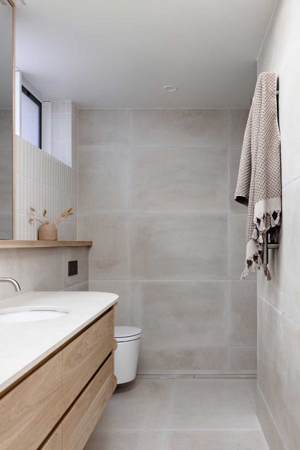 A coastal home, featuring this timeless bathroom, which uses soft tones to create a beautiful relaxing space