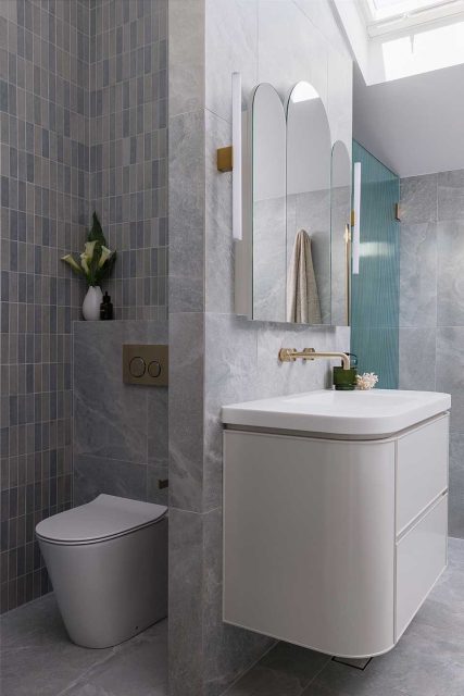 A stunning renovation, featuring a gorgeous curved wall, a private WC and a generous shower area.